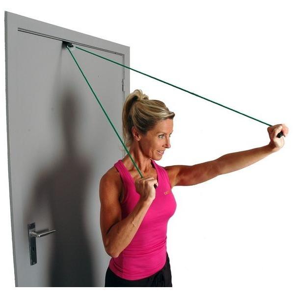 • Zestaw zawiera odpowiednio linkę lub tubing, uchwyty, bloczek, zaczep drzwiowy oraz instrukcję.