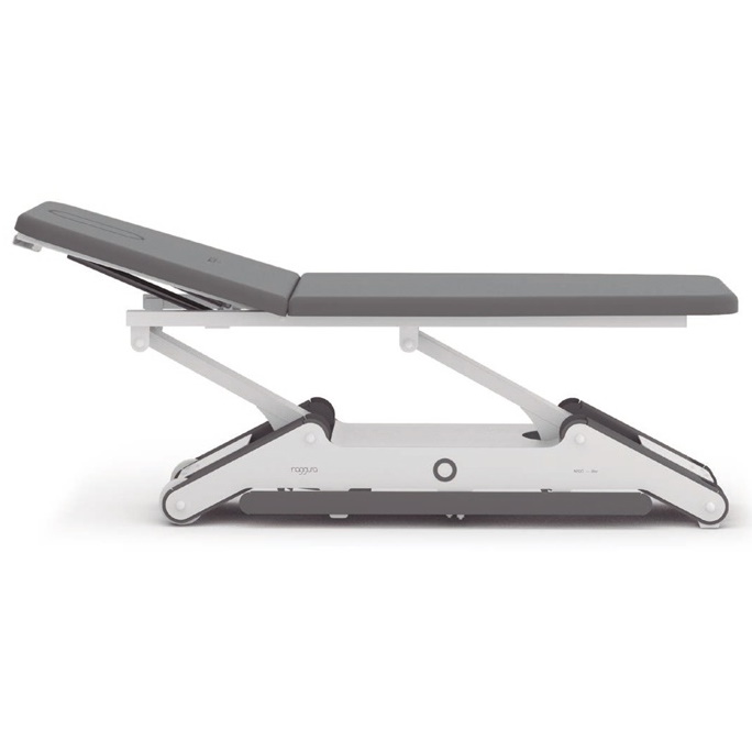 Wysokiej jakości 2 segmentowa leżanka charakteryzuje się prostym i nowoczesnym wyglądem. Intuicyjny system regulowania wysokości bo obu stronach stołu wspomaga sterowanie nożne. N'GO został zaprojektowany z największą dbałością, aby stworzyć produkt praktyczny i kompaktowy,a wszystkie rozwiązania techniczne będą wkomponowane w jego konstrukcję. Wysokiej jakości tapicerka z tkaniny powlekanej winylem, zapewnia trwałość i odporność w środowiskach medycznych.