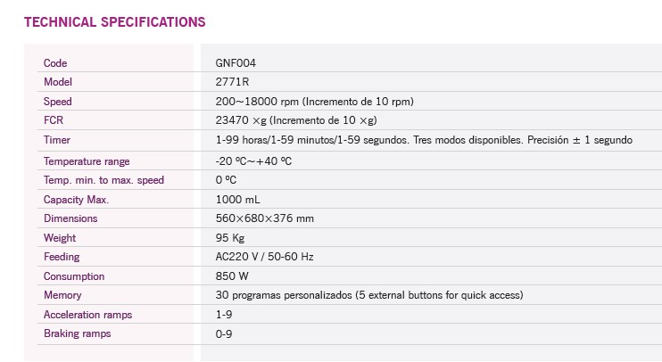 Ta wysokoobrotowa (do 18 000 obr.rpm), wielofunkcyjna wirówka z chłodzeniem o dużej pojemności (1 000 ml). Może wykorzystywać bardzo szeroki zakres wirników kątowych i wychylnych dla maksymalną wszechstronność. Jest w stanie oddzielić większość bakterii i wirusów, kwasów nukleinowych, wirowania w gradiencie gęstości, separacji krwi i przetwarzania próbek klinicznych, a także w każdym procesie, w którym próbka integralność próbki musi być zachowana lub wirowana w stałej temperaturze.