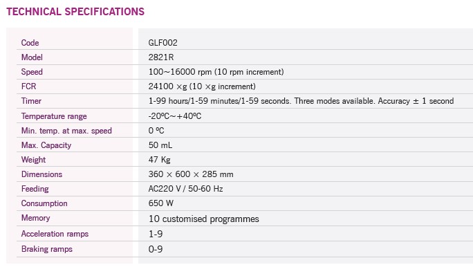 Szybkoobrotowa wirówka z rotorami kątowymi model 2821R łączy w sobie dużą wszechstronność i łatwość obsługi. Posiada najnowszą technologię sterowania, niezawodną jakość i doskonałą wydajność i jest szeroko stosowana w laboratoriach medycznych, biochemicznych i biologii molekularnej, a także w rutynowych analizach w laboratoriach przemysłowych.