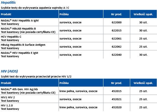 Oferowane są testy zanurzeniowe lub kasetowe.