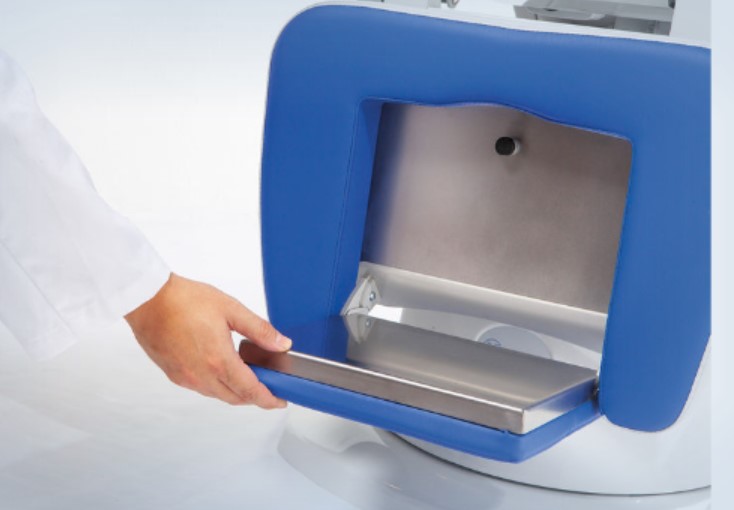 Fotel MEGA dostępny jest w dwóch wersjach różniących się funkcjonalnością: MEGA 3 oraz MEGA 4. W każdej wersji fotel jest podnoszony, obracany i rozkładany za pomocą silników elektrycznych uruchamianych sterownikiem nożnym. Podnóżek jest ruchomy, w modelu MEGA 3 podnoszony ręcznie, w modelu MEGA 4 podnoszony elektrycznie. Oparcie rozkładane jest symultanicznie z podłokietnikami do pozycji horyzontalnej lub Trendelenburga (-20°). Podłokietniki są podnoszone, każdy niezależnie. Fotel obracany jest 360° w prawo i w lewo. Zagłówek ma regulację w trzech płaszczyznach. Tapicerka bezszwowa, wykonana ze skóry ekologicznej, dostępna w 18 kolorach.