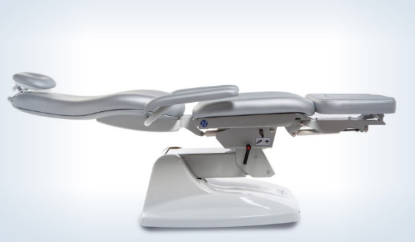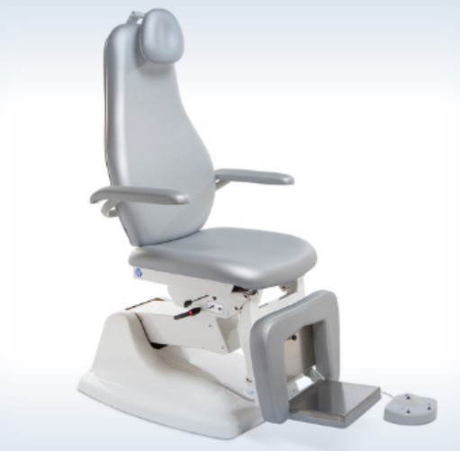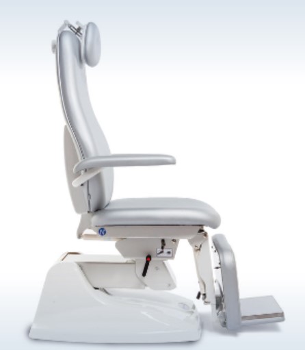 Fotel ORION podnoszony jest za pomocą silnika elektrycznego uruchamianego sterownikiem nożnym. Nachylenie oparcia i podnóżka regulowane są manualnie. Oparcie rozkładane jest do pozycji horyzontalnej. Podłokietniki są podnoszone, każdy niezależnie. Fotel obracany jest 70° w prawo i 70° w lewo. Zagłówek może być z ustawianą wysokością lub regulowany w trzech płaszczyznach (opcja dodatkowa). Tapicerka bezszwowa, wykonana ze skóry ekologicznej, dostępna w 18 kolorach.