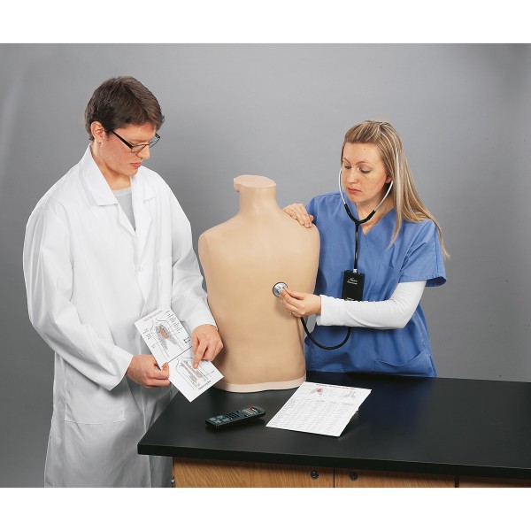 Osłuchowy trenażer serca i płuc służy do treningu osłuchiwania różnych odgłosów serca i płuc do złudzenia przypominających odgłosy serca i płuc naturalnego pacjenta.