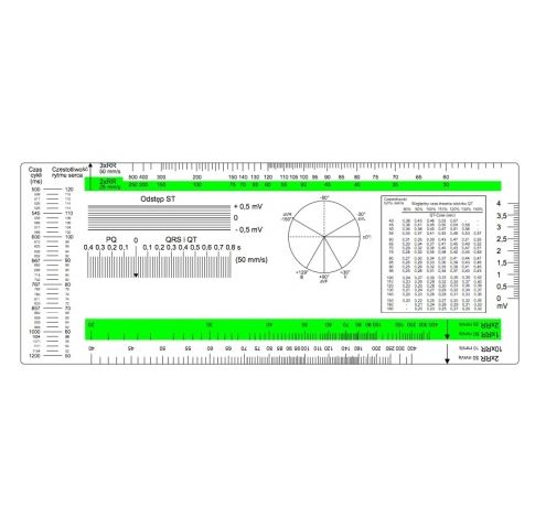 Długość: 21.1 cm, szerokość: 8.6 cm. Pomocna przy analizie zapisu EKG różnymi maszynami korzystającymi z różnego rodzaju papieru.