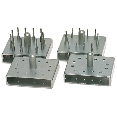 Stalowa podstawka na wiertła. Posiada wygodny uchwyt. Nadaje się do myjek ultradźwiękowych, do sterylizacji w autoklawach i do myjni – dezynfektorów.