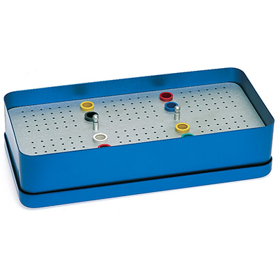 Aluminiowy endoboks z 180 otworami na instrumenty endo. Endoboks posiada dodatkowo 6 pojemniczków na gutaperkę. Nadaje się do sterylizacji w autoklawach.