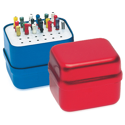 Aluminiowy endoboks z 30 otworami na instrumenty endo. Nadaje się do sterylizacji w autoklawach.