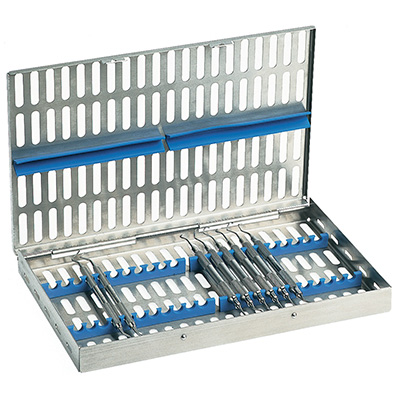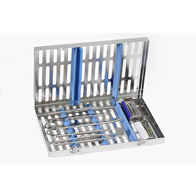 Kasetka posiada silikonowe podkładki – uchwyty na instrumenty i przykrywkę. Nadaje się do myjek ultradźwiękowych, do sterylizacji w autoklawach i do myjni – dezynfektorów.