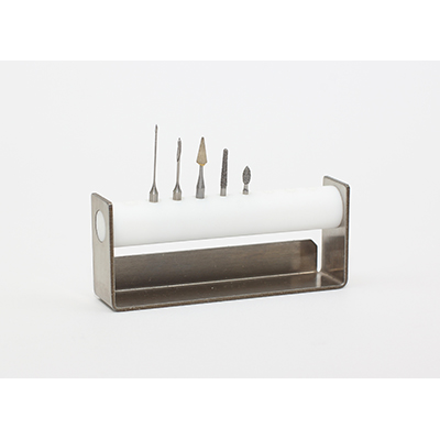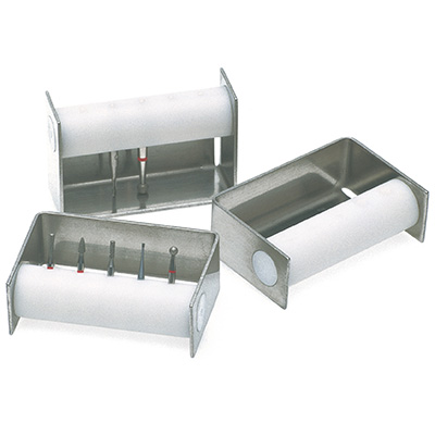 Stalowy stelaż z białym teflonowym wkładem z otworami. Nadaje się do myjek ultradźwiękowych, do sterylizacji w autoklawach i do myjni – dezynfektorów.
