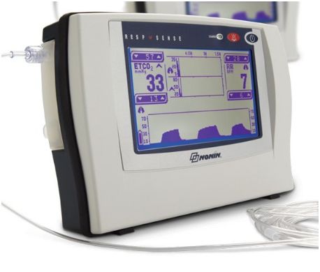 mierzy i wyświetla częstość oddechów oraz zawartość dwutlenku
