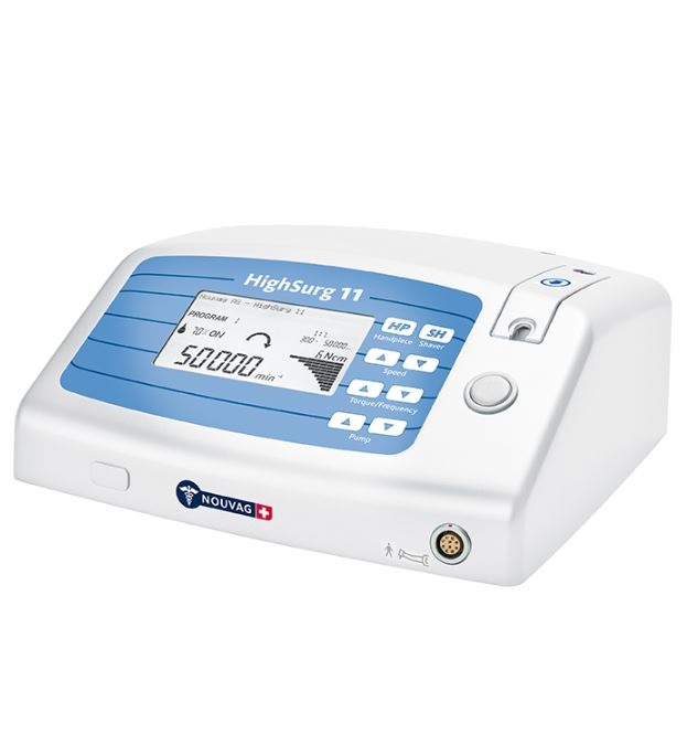 HighSurg 11 jest urządzeniem dwufunkcyjnym. Może być wykorzystywane jako wiertarka (do 50 000 obr/min) podczas operacji otologicznych oraz jako shaver w operacjach endoskopowych zatok FESS. System HighSurg 11 wyposażony jest w elektronicznie kontrolowaną pompę perystaltyczną z regulacja przepływu. Wbudowany na przednim panelu duży i czytelny wyświetlacz LCD informuje o wszystkich parametrach pracy urządzenia. HighSurg 11 wyposażony jest w wodoszczelny regulator nożny, dzięki któremu chirurg może samodzielnie zmieniać ustawienia podczas zabiegu. Konstrukcja i funkcjonalność urządzenia spełnia najwyższe standardy, a jakość i precyzja wykonania gwarantują bezawaryjną pracę.