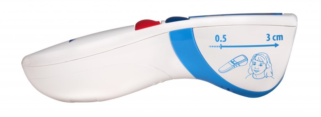 Termometr Novama Free to nowoczesny błyskawiczny termometr bezdotykowy. Posiada funkcję pomiaru w odległości od 0,5 do 3 cm z wyygodnym przymiarem na boku termometru. Natychmiastowy, pomiar poniżej 1 s. Termometr mierzy temperaturę ciała, obiektów, płynów, posiłków a także wody w kąpieli. Posiada duży, podświetlany ekran, pamięć 30 pomiarów, alarm gorączki oraz wskaźnik zużycia energii. Termometr Novama Free można przełączyć w tryb nocny, dzięki temu nie obudzimy śpiącego dziecka.