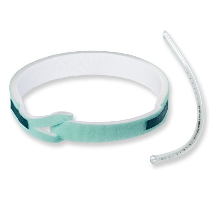 Do stosowania zarówno u dorosłych jak i młodzieży czy dzieci. Wykonane z zielonej pianki pokrytej warstwą białej bawełny od strony skóry pacjenta. Dodatkowa taśma rzepowa do przyklejenia bezpośrednio na rurkę gwarantuje pełne bezpieczeństwo i stabilizację nawet u pacjentów pobudzonych i w ruchu.