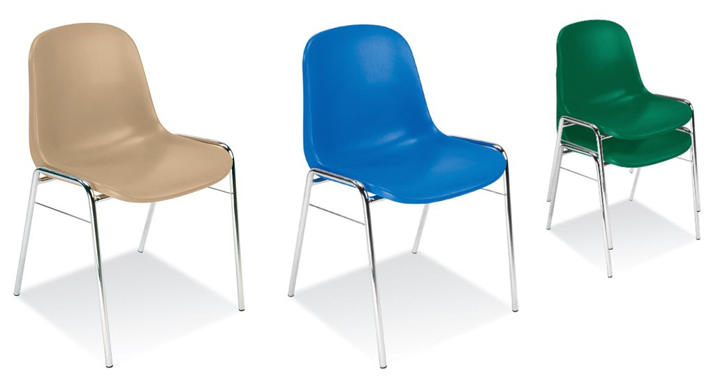 Krzesło na metalowym chromowanym stelażu, lekkim a zarazem bardzo stabilnym. Siedzisko plastikowe, bardzo trwałe, ze specjalną powłoką antypoślizgową. Możliwość sztaplowania, czyli składowania krzeseł jedno w drugim. 12 kolorów plastiku do wyboru. Istnieje możliwość łączenia krzeseł w szereg.