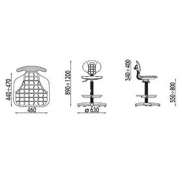 Krzesło laboratoryjne Negro GTS z okrągłym podnóżkiem:
