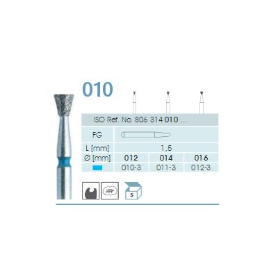 Wiertło – odwrócony stożek z nasypem diamentowym, dwuwarstwowym. Trzpień ze stali kwaso- i zasadoodpornej, pokryty warstwą wspomagającą przyleganie diamentów.