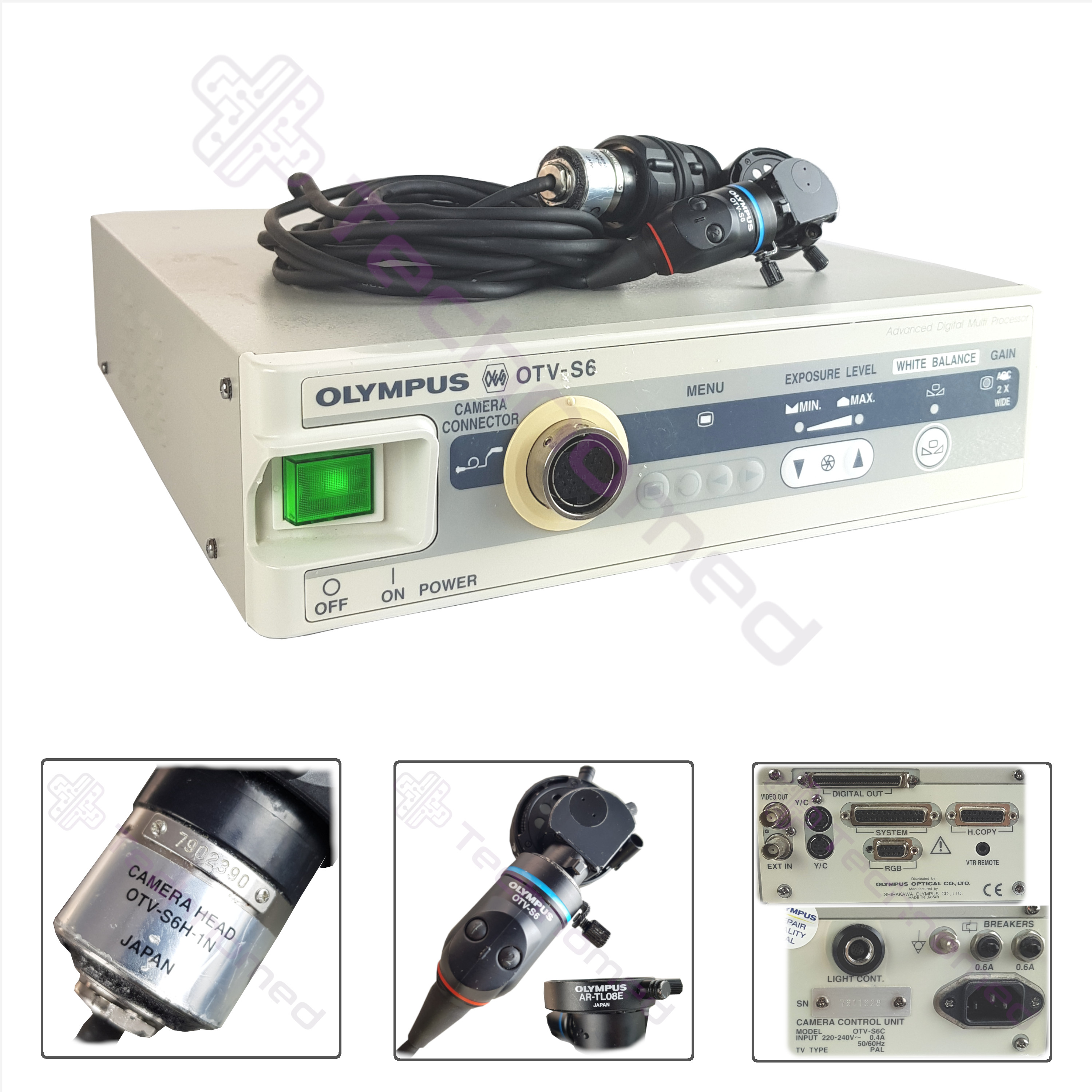 Używany procesor obrazu OLYMPUS OTV-S6 z głowicą kamery i adapterem AR-TL08E - zasilanie: 220-240 V, - częstotliwość: 50-60 Hz, - TV typ: PAL. Urządzenie w pełni sprawne technicznie, stan wizualny bardzo dobry.