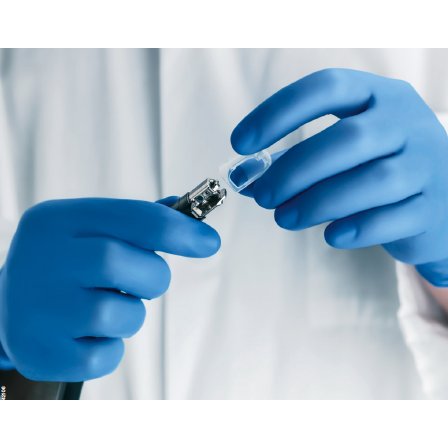 Nowy adapter płuczący MAJ-2319 zmniejsza liczbę wymaganych etapów płukania i zapewnia kontrolowane rozprowadzenie środka myjącego i dezynfekującego na końcówce dystalnej endoskopu podczas ręcznej obróbki