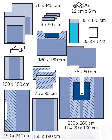 Zestaw do operacji stawu biodrowego, duży: • 1 serweta stołu Mayo, wzmocniona 78 x 145 cm,