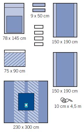Zestaw do operacji kończyn: • 1 serweta stołu Mayo, wzmocniona 78 x 145 cm,