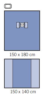 Zestaw do operacji oczu: • 1 warstwa ochronna 10 x 12 cm, • 1 serweta okulistyczna 150 x 180 cm, torebka na płyny, zintegrowaną warstwa ochronna z okrągłą przesłoną 5 x 7 cm, • 1 serweta na stół do instrumentarium 150 x 140 cm.
