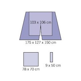 - 2 pokrywające się serwety 175 x 127 x 150 cm i 103 x 106 cm