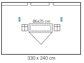 Serweta pionowa, mała - 240 x 330 cm, warstwa ochronna 30 x 40 cm, zintegrowana torebka na płyny z sitem i otworem wyjściowym, 2 uchwyty na przewody i 2 worki do diatermii i odsysania 24 x 24 cm.