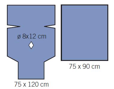 Skład zestawu: 1 serweta 75 x 120 cm, przesłona 8 x 12 cm, wcięcia i przylepce na krawędziach; 1 serweta 75 x 90 cm; Opakowanie: 1/17/68.