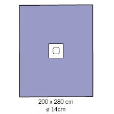 200 x 280 cm, otwór o średnicy 14 cm.