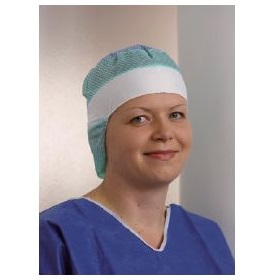 Czepek chirurgiczny z opaską przeciwpotną z włókniny typu Spunlace. Wykony z wiskozy, wzorzysty.