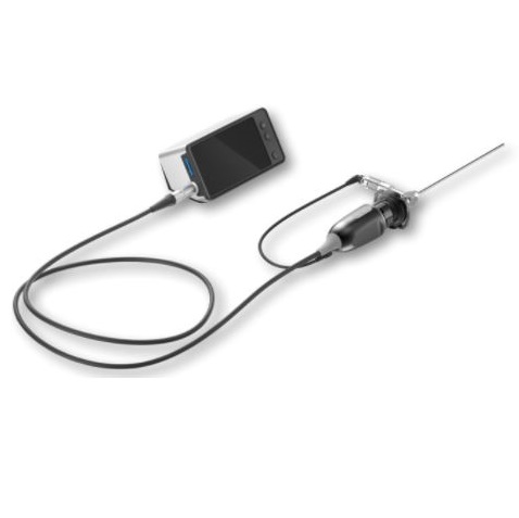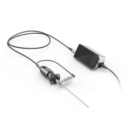 Medyczna kamera endoskopowa z monitorem i źródłem światła. Własny monitor powoduje, że badanie kamerą można przeprowadzić w każdym miejscu bez potrzeby podłączania do monitora. Dodatkowo wbudowane gniazdo kart SD pozwala robić zdjęcia i nagrywać filmy w trakcie badania.