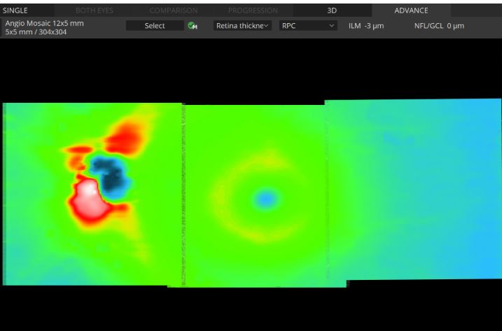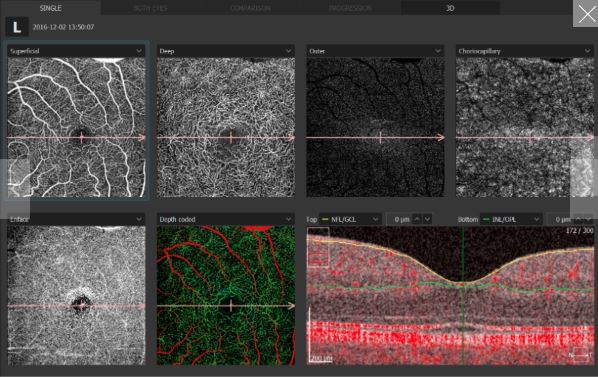 Udoskonalone obrazowanie naczyniówki i ciała szklistego ułatwia szczegółową ocenę stanu struktur poniżej i powyżej siatkówki. Dzięki narzędziu do pomiaru odległości można w łatwy sposób ocenić grubość naczyniówki. Obrazowanie naczyniówki, a także najdrobniejszych szczegółów ciała szklistego zostało poprawione dzięki zaawansowanym trybom skanowania.