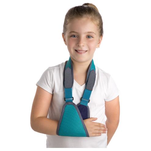 Dziecięca zawieszka na rękę składa się z zawieszki przedramiennej połączonej z taśmą służącą do założenia dookoła szyi. Zawieszka wykonana jest z oddychającego materiału o strukturze plastra miodu wyłożonego od wewnętrznej strony przylegającej do przedramienia materiałem frotte, taśma mocująca wykonana jest z miękkiego i przyjemnego w kontakcie z ciałem velurowego materiału. Taśma służąca do zawieszenia zapinana jest na velcro i anatomicznie wycięta by zapewnić maksimum komfortu i przylegania oraz zredukować uczucie dyskomfortu powstające na skutek nacisku na szyję podczas stosowania ortezy.