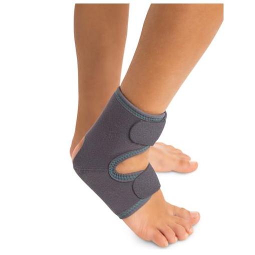 Dziecięca orteza stawu skokowego wykonana jest z oddychających materiałów od wewnętrznej strony o strukturze plastra miodu, od zewnętrznej strony materiałem typu velur (oba materiały elastyczne), do ortezy dołączona jest taśma elastyczna pozwalająca na ósemkowe zapięcie oraz indywidualne dopasowanie siły stabilizacji, w celu wygodniejszego zakładania orteza jest otwierana z przodu.