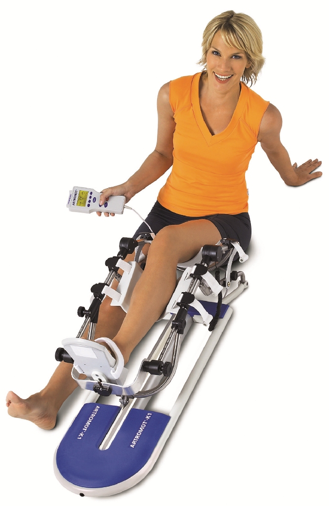 ARTROMOT-K1 zmotoryzowana szyna ruchowa przeznaczona do ciągłej, biernej mobilizacji stawu kolanowego i biodrowego z możliwością zastosowania elektrostymulacji zsynchronizowanej z przerwą w czasie wyprostu. Fizjologiczny zakres ruchomości zgodny ze zginaniem i prostowaniem. Anatomiczne ustawienie - wyklucza przesunięcie puntku obrotowego stawu pacjenta przy wzrastającym zgięciu kolana. Stosowanie na lewej i prawej kończynie dolnej bez konieczności przebudowy. Prosta obsługa przy pomocy pilota z symbolami obrazkowymi. Zapamiętywanie indywidualnych danych terapia pacjenta. Urządzenie może być stosowane w warunkach: szpitalnych/ambulatoryjnych, w praktyce lekarza rodzinnego, a także indywidualnie w domu.