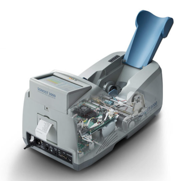 Ultradźwiękowy densytometr do pomiaru gęstości kości. Sonost 3000 oferuje możliwość łatwego i szybkiego pomiaru gęstości mineralnej kości poprzez kość piętową. Urządzenie dokonuje pomiaru prędkości fali ultradźwiękowej (SOS) oraz szerokopasmowego tłumienia dźwięków (BUA) obliczając w ten sposób wskaźnik jakości kości (BQI).