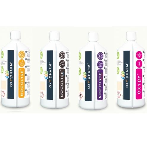 Połączenie środków Nocolyse z urządzeniami Nocospray (lub Nocomax) to potwierdzone działanie bakteriobócze, sporobójcze, wirusobójcze i grzybobójcze. Teraz również dostępny środek insektobójczy OXYPY do zwalczania owadów latających lub pełzających i roztoczy (w tym świerzbu).