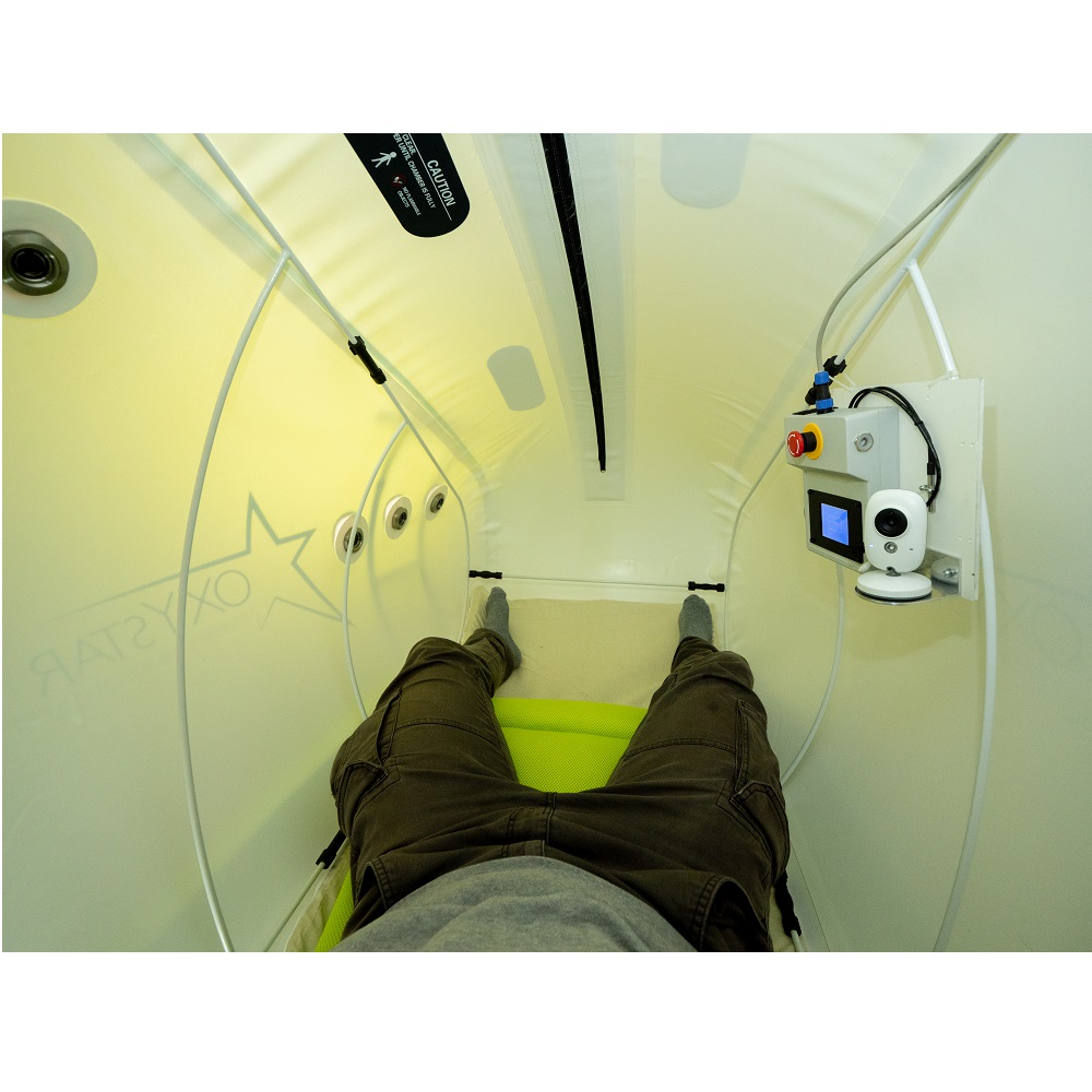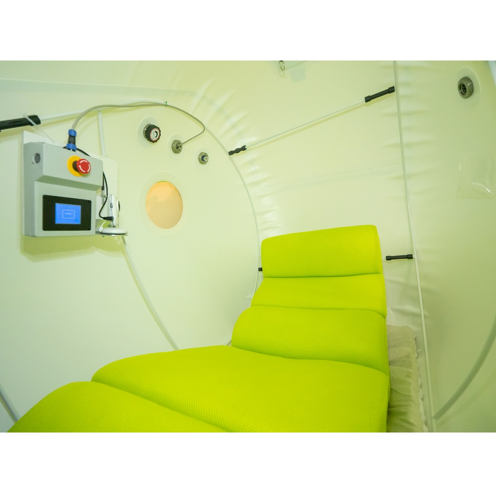 prosta obsługa sterownika to atuty tego rozwiązania. System dodatkowo wyposażony jest m.in. w generator wodoru gazowego, wydajną i cichą sprężarkę, profesjonalny koncentrator tlenu o wydajności 10 l/min, system chłodzenia i osuszania powietrza, wbudowany ozonator to dezynfekcji wnętrza komory po seansie oraz butlę CO2 z reduktorem dla szybszego osiągnięcia optymalnej atmosfery w komorze.