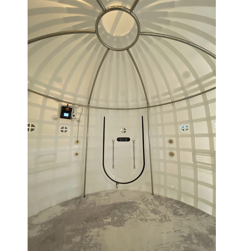 Maksymalnie przestrzenne i jasne wnętrze, szerokie i wygodnie wejście, możliwość korzystania ze sprzętu elektronicznego w środku, dowolna długość zabiegu normobarycznego, prosta obsługa sterownika to atuty tego rozwiązania. System dodatkowo wyposażony jest m.in. w generator wodoru gazowego, wydajną i cichą sprężarkę, profesjonalny koncentrator tlenu, system chłodzenia i osuszania powietrza, ozonator to dezynfekcji wnętrza komory po seansie oraz butlę CO2 z reduktorem dla szybszego osiągnięcia optymalnej atmosfery w komorze.
