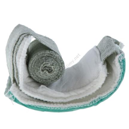 Opatrunek składa się z dwóch chłonnych tamponów o rozmiarach 11 x 15 cm, z których jeden jest przymocowany na stałe do bandaża elastycznego o wymiarach 10 cm x 4 m.