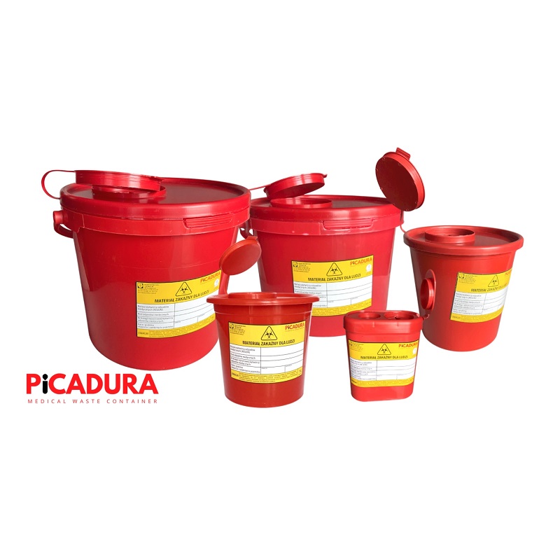 Pojemniki Picadura to obowiązkowe wyposażenie każdego szpitala, przychodni, gabinetu czy punktu szczepień. Produkt posiada atest PZH o numerze B-BK-60211-0815/20. Do pojemnika dołączona jest etykieta w języku polskim z międzynarodowym znakiem ostrzegawczym oraz instrukcja użytkowania.
