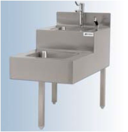 Zlew prosektoryjny. Pierwszy zbiornik zaprojektowany na narzędzie. Powierzchnia robocza wyposażona w krawędzie zapobiegające rozlaniu.