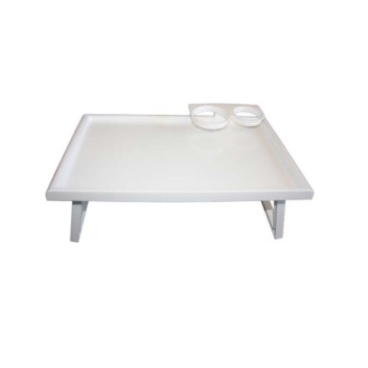 Ten przenośny stolik umożliwia przede wszystkim wygodne spożywanie posiłków w łóżku, ale można go także wykorzystać jako podręczna podstawka do pisania czy hobby. Bezpieczny i wygodny. Stolik wyposażony jest dodatkowo w dwa uchwyty - do szklanki i butelki, podwyższone obrzeże chroni umieszczone na min naczynia przed zsunięciem. Stolik ze składanymi nogami.