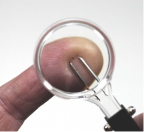 Profesjonalna, punktowa pęseta z lupą przeznaczona jest do precyzyjnych prac podczas depilacji brwi, wyciągania drzag oraz do innych bardzo dokładnych prac. Przy pomocy ośmiokrotnie powiększającej lupy można również zaobserwować zmiany na skórze i płytce paznokciowej. Wykonana jest z wysokiej jakości stali nierdzewnej. Można ją dezynfekować. Długość pęsety z lupą wynosi 13 cm. Średnica szkła powiększającego 3 cm. Zarówno pęseta jaki i lupa ma możliwość regulacji.