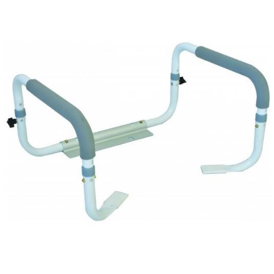 Ta podpórka do sedesu ma mocną stalową ramę, która została pokryta farbą epoksydową, zawierającą pigmenty antykorozyjne. Ramę można regulować na wysokość, a podłokietniki pokryte są antypoślizgowym tworzywem. Idealna podpórka dla osób, które mają trudności w wstawaniem i siadaniem na toalecie.