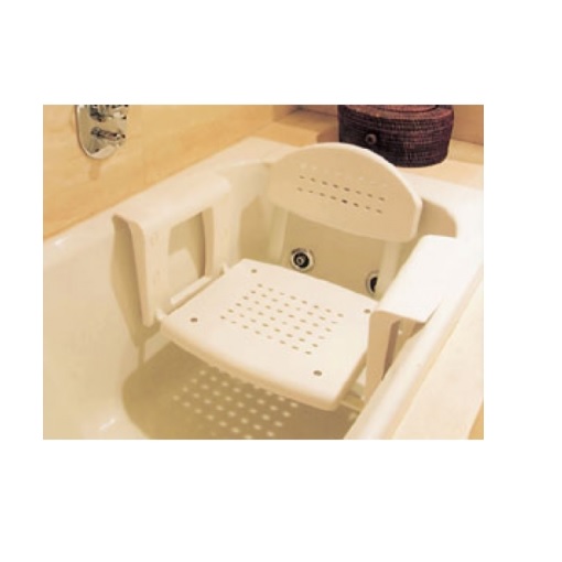 Ławeczka wannowa z regulacją wysokości i szerokości, w kolorze białym. Idealna dla osób, które mają problemy z siedzeniem w wannie i wstawaniem.