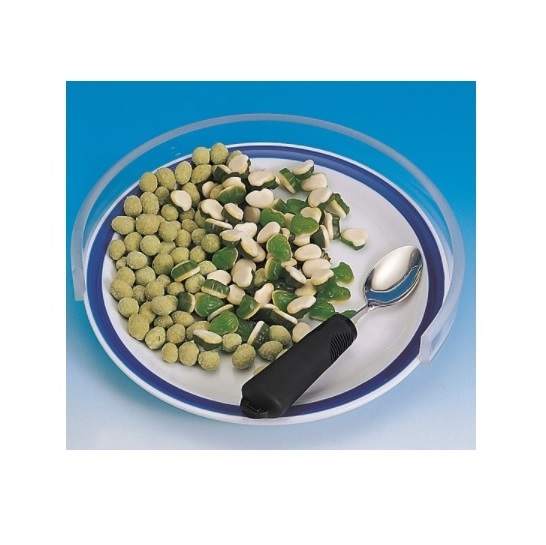 Zapobiega spadaniu jedzenia z talerza. krawędź szkiełka posiada rowek, który dopasowuje się do talerza.Szczególnie przydatna dla osób jędzących jedną ręką.