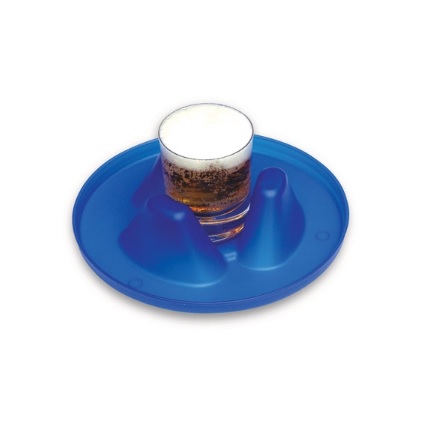 Jest to ochrona przed rozlaniem napoju i poparzeniem. Kubek umieszcza się na środku tacy w specjalnie stworzonym otworze, który uniemożliwia jego przesunięcie się.