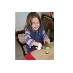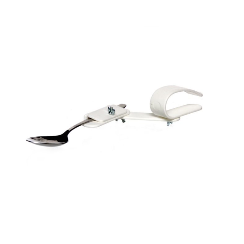Uchwyt na sztućce to przyrząd do samodzielnego spożywania posiłków przez osoby z pourazowym brakiem palców dłoni. Przydatny także dla osób np. z chorobą Parkinsona, reumatyzmem, niedowładem kończyn górnych - uławia spożywanie posiłków i usamodzielnia w czynności jedzenia. Można nim trzymać, również inne przedmioty jak długopis czy grzebień.
